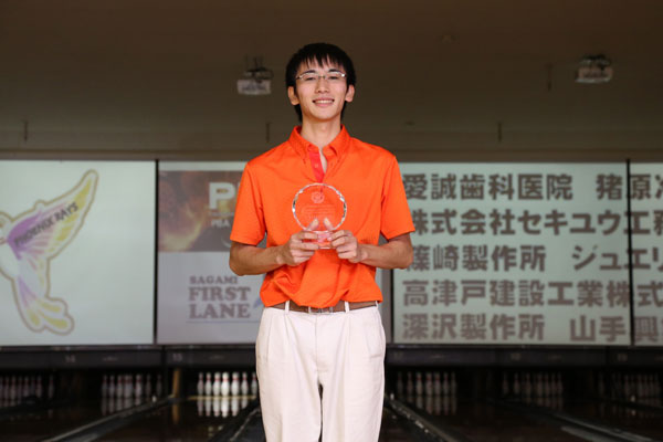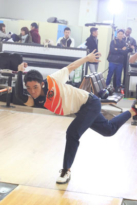 JBC学連の白井は、地元名古屋でプロが認める注目のボウラー。過去にも予選を上位で通過するなど、キラリと光るその才能をついに開花させ、大金星を飾った。